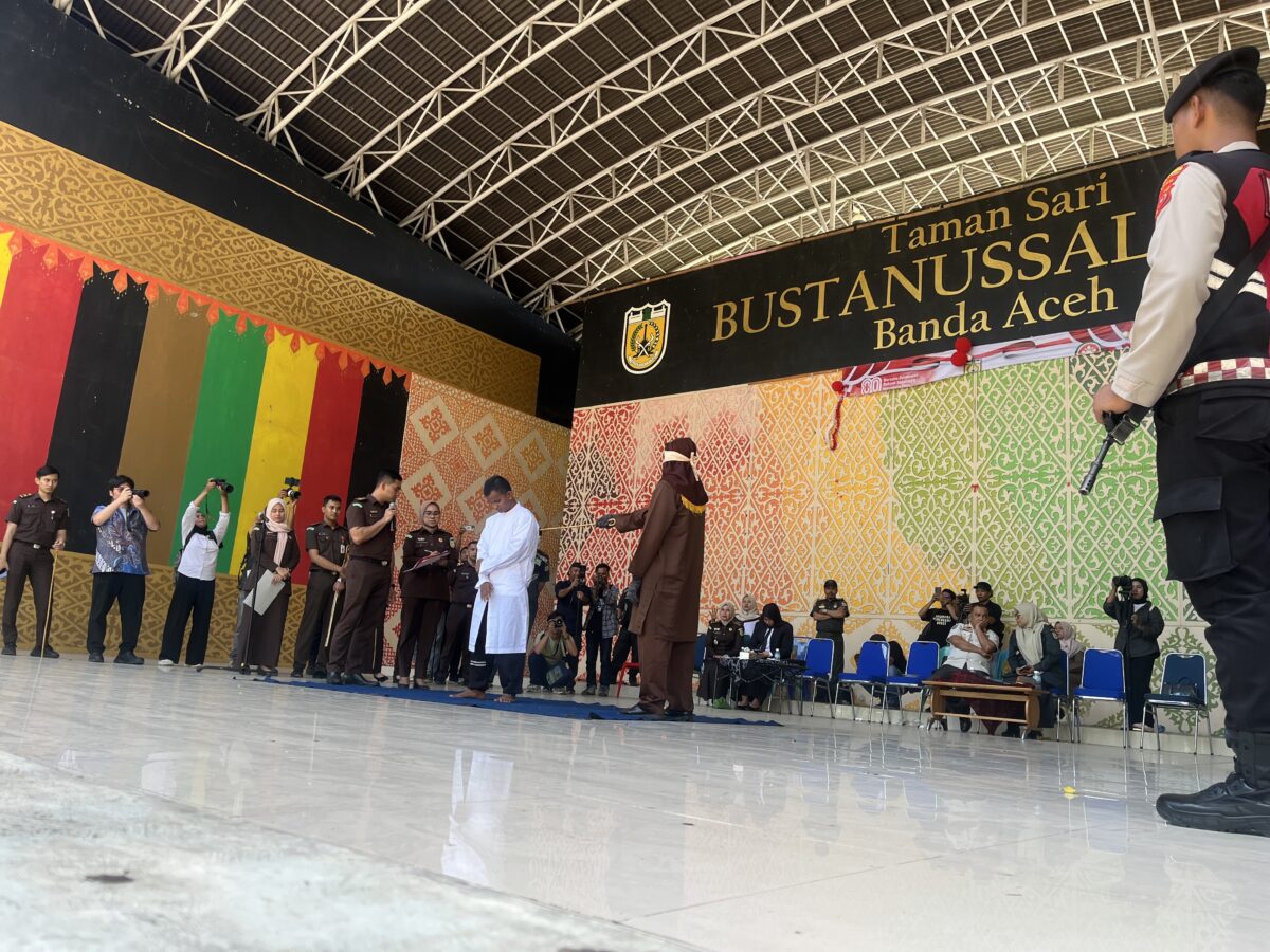 Analisaaceh.com, Banda Aceh | Sebanyak 10 pelanggar Qanun Jinayat menjalani hukuman cambuk di Taman Bustanussalatin, Banda Aceh, Selasa (26/8/2025).