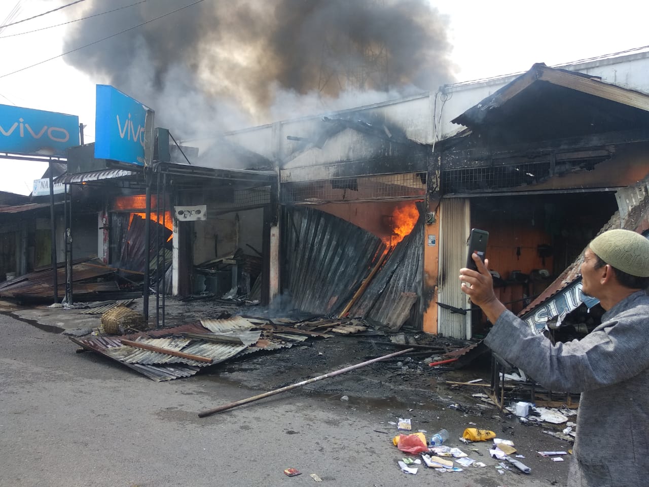 Analisaaceh.com, Bireuen | Sedikitnya 10 unit ruko kontruksi permanen dilahap si jago merah di Keude Samalanga, Gampong Sangso, Kecamatan Samalanga, Kabupaten Bireuen, Jum’at (22/11/2019) sekitar pukul 13.20 WIB.
