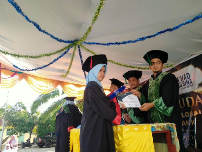 Wisuda yang bertepatan pada bulan suci Ramadhan 1443 Hijriah tersebut berlangsung di halaman Ma’had Ibnu Sina Gampong Padang Sikabu, Kecamatan Kuala Batee Kabupaten Aceh Barat Daya (Abdya).