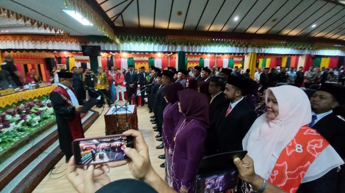 Analisaaceh.com, Lhokseumawe | Sebanyak 25 anggota Dewan Perwakilan Rakyat Kota (DPRK) Lhokseumawe resmi dilantik dan diambil sumpah jabatannya dalam sidang paripurna di aula DPRK Lhokseumawe, Selasa (10/9/2024). Prosesi pengambilan sumpah dipandu oleh Ketua Pengadilan Negeri Lhokseumawe, Faisal Mahdi, SH, MH.