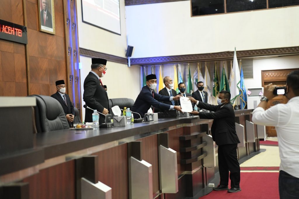 Paripurna tersebut dipimpin Ketua DPRA Dahlan Jamaluddin serta dihadiri Gubernur Aceh Nova Iriansyah.