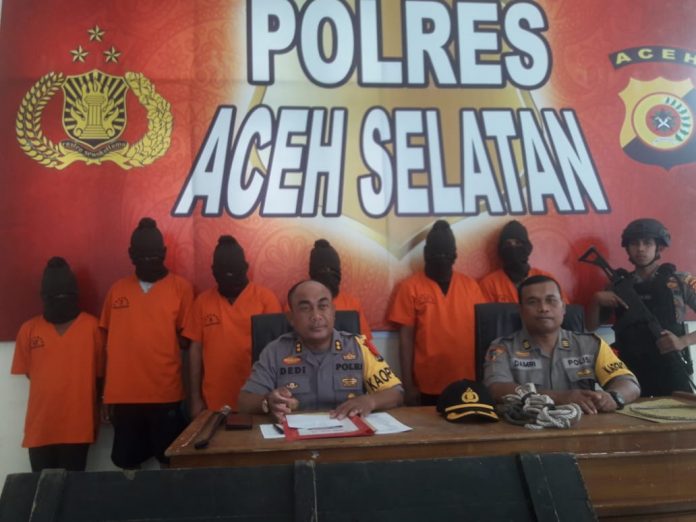 Keenam pelaku, yakni SD (36) warga Gampong Jawa, Baiturrahman Kota Banda Aceh, DL (42) warga Gampong Kuta Trieng, Labuhan Haji Barat, Aceh Selatan, SF (50) Gampong Pulau Kayu, Susoh, Abdya.