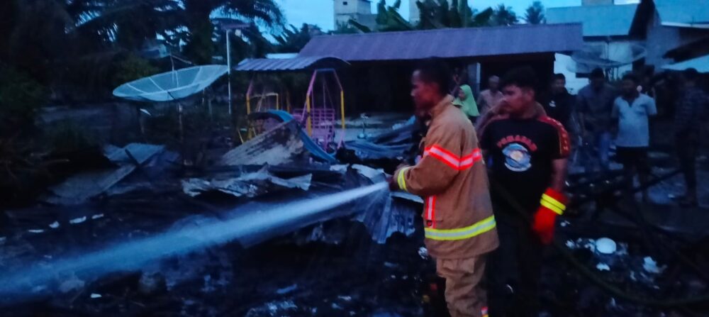 Analisaaceh.com, Suka Makmue | Sebanyak enam unit kios milik warga Gampong Panton Bayu, Kecamatan Darul Makmur, Kabupaten Nagan Raya hangus terbakar pada Jum’at (22/9/2023) pagi.