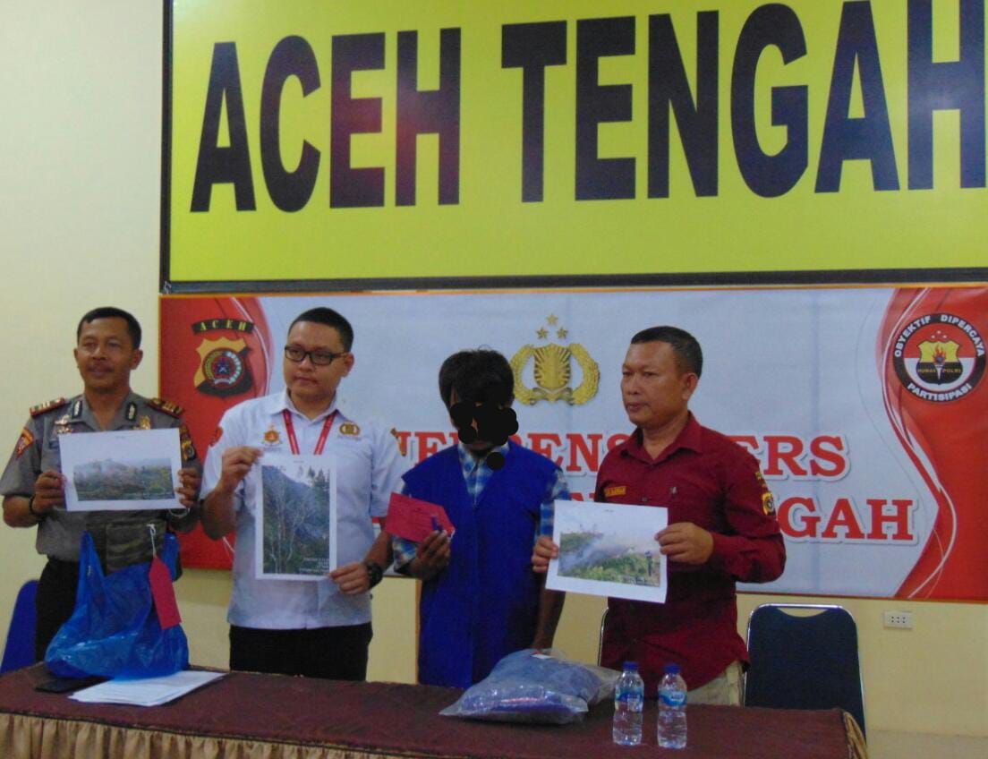 Analisaaceh.com, Takengon | Kepolisian Resort (Polres) Aceh Tengah tahan seorang pria MY (41) warga kampung Asir-Asir Kecamatan Lut Tawar Kabupaten setempat, ia diduga secara sadar telah membakar lahan seluas 8 Hektar di gunung Lancuk Leweng pada 8 Februari 2020 yang lalu.
