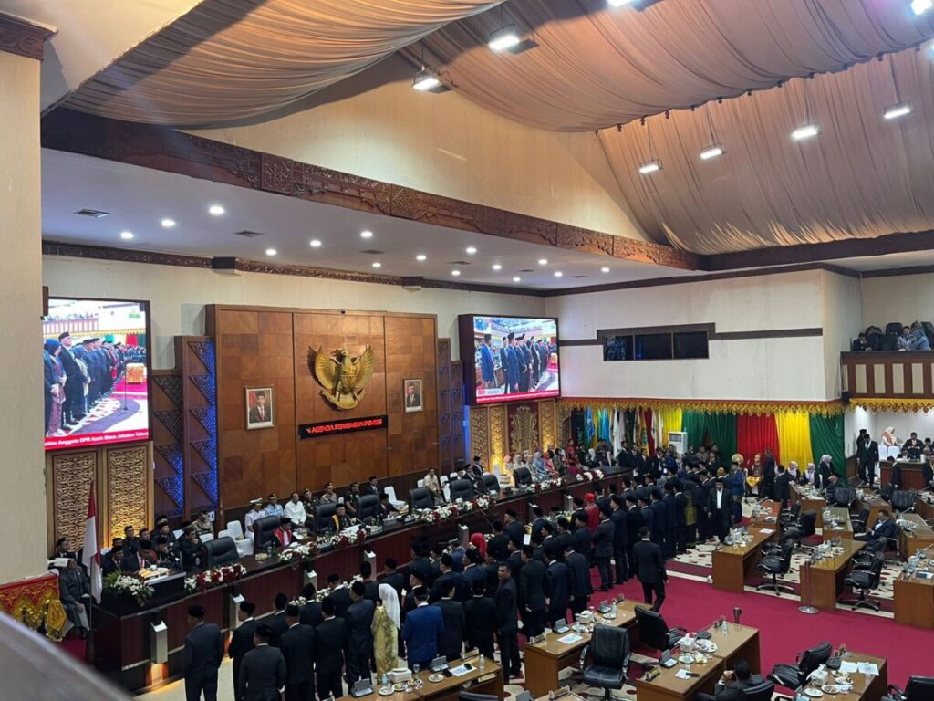 Analisaaceh.com, Banda Aceh | Sebanyak 76 dari 81 anggota Dewan Perwakilan Rakyat Aceh (DPRA) Aceh periode 2024 – 2029 hasil Pemilu Legislatif Pemilu Tahun 2024 dilantik dan diambil sumpah pada Senin (30/9/2024).