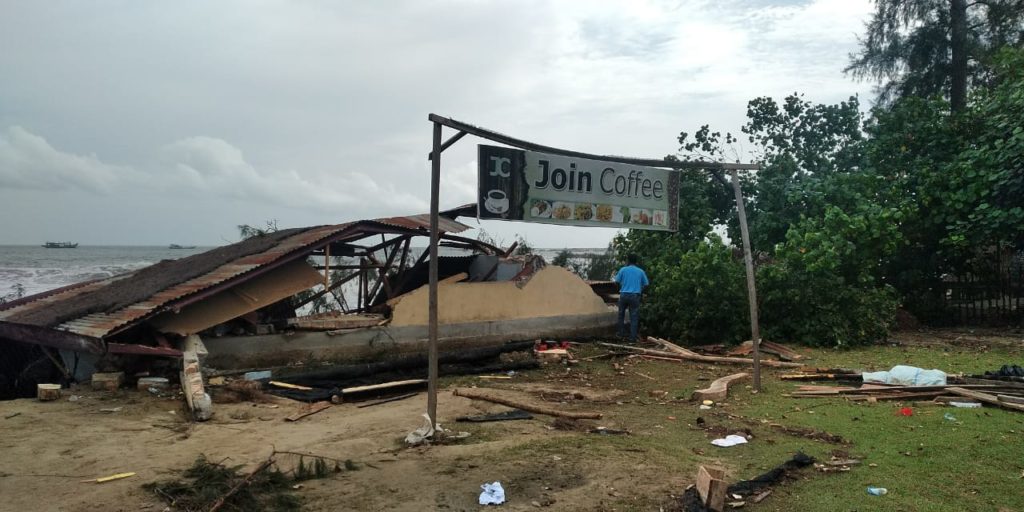 Akibatnya, sejumlah pondok dari pemilik kantin mengalami kerusakan, bahkan sebagian lainnya juga ikut terbawa gelombang ke laut.