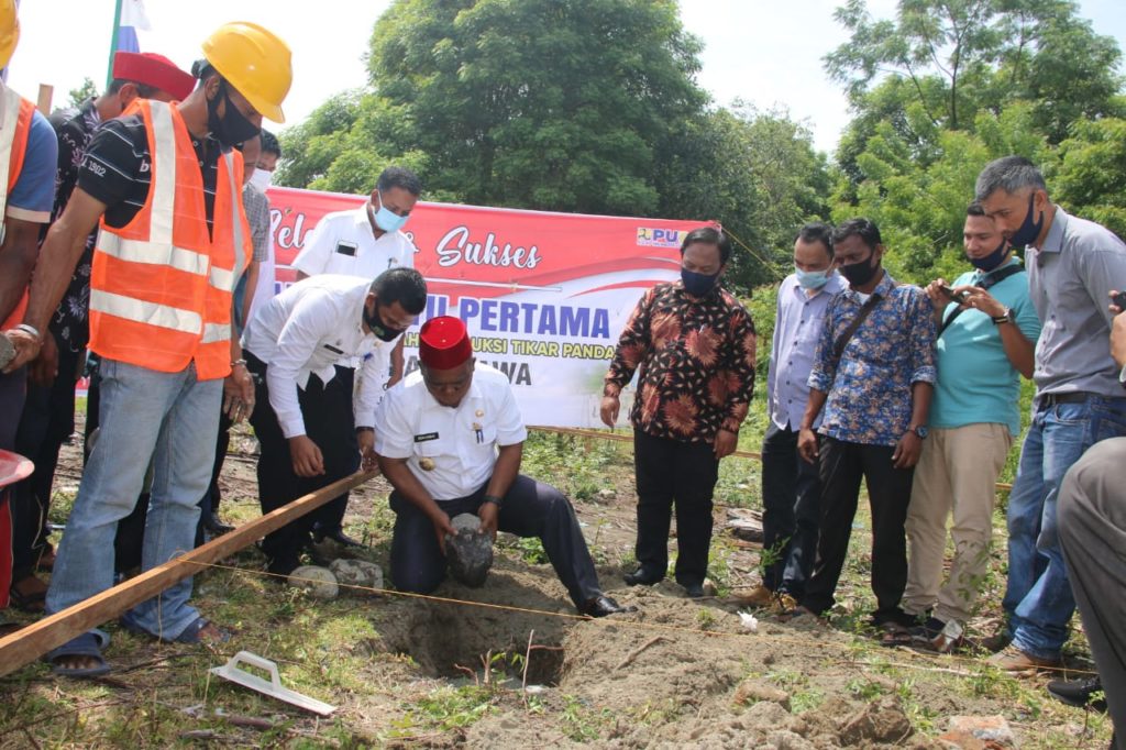 Analisaaceh.com, Sigli | Bupati Pidie Roni Ahmad, SE melakukan peletakan batu pertama pembangunan rumah produksi tikar pandan, melalui program Kota Tanpa Kumuh (KOTAKU) Kabupaten Pidie di Gampong Pasi Rawa, Kecamatan Kota Sigli, Rabu (26/8/2020).