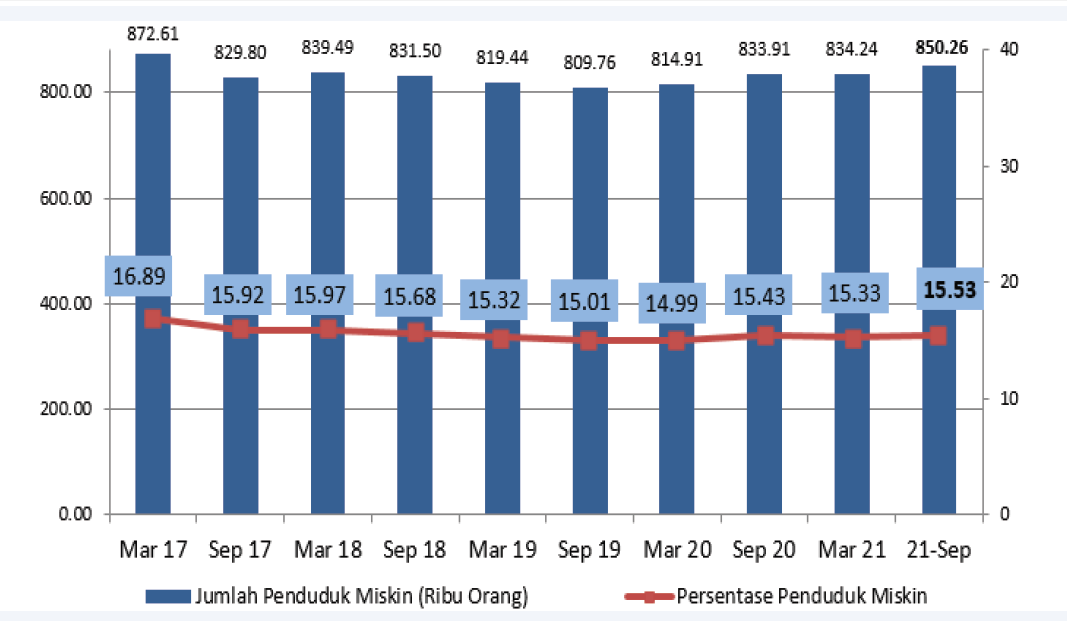 Sementara pada September 2020 naik menjadi 15,43 persen. Kemudian, pada Maret 2021 turun menjadi 15,33 persen. Terakhir pada september 2021 menjadi 15,53 persen.