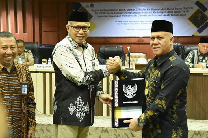 Piagam itu diserahkan langsung oleh Plt.Gubernur Aceh Ir.Nova Iriansyah.MT dalam kegiatan penyerahan Daftar Isian Pelaksanaan Anggaran (DIPA), Transfer Kedaerah Dana Desa (TKDD) tahun Anggaran 2020 dan penyerahan penghargaan opini WTP laporan keuangan pemerintah daerah se-Provinsi Aceh Tahun 2019.