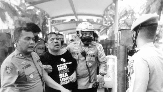 Analisaaceh.com | Ketua Pergerakan Indonesia untuk Semua (PIS) Ade Armando, babak belur dihajar sekelompok orang di kawasan Gedung DPR RI, Senin (11/4).
