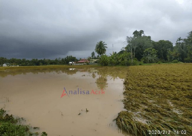 ANALAISACEH.COM, PIJAY | Akibat hujan deras yang mengguyur sejak sabtu (01/02) malam, selain mengenangi pemukiman penduduk juga berdampak pada 397 Ha lahan sawah yang terancam gagal panen di Kabupaten Pidie Jaya, Minggu (02/02/2020).
