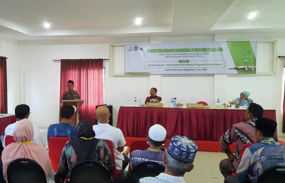 Hal itu disampaikan Akmal dalam acara pembukaan Penyuluhan Hukum Pengelolaan Dana Desa (DD) Alokasi Dana Desa (ADD) dengan tema kenali hukum, jauhi hukuman, melalui program kawal desa, di Aula Hotel Gren Lauser, Kecamatan Blangpidie, Jumat (17/6/2022).