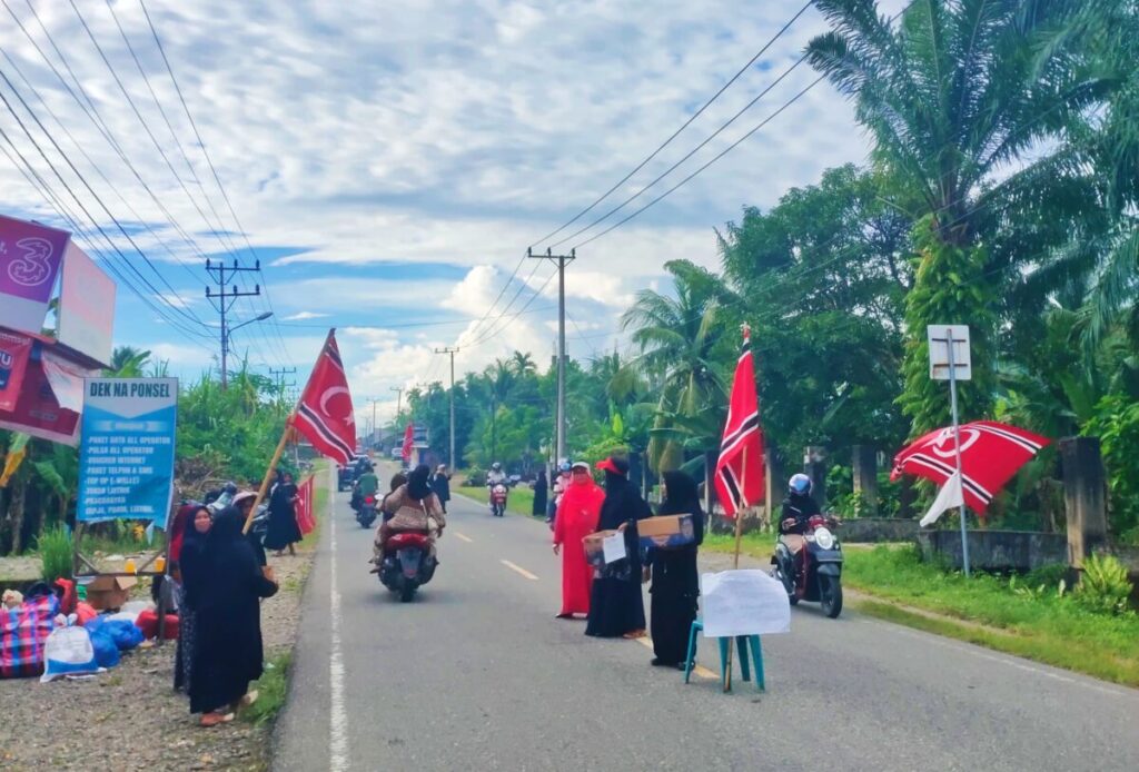 Masyarakat Abdya menggelar aksi galang dana untuk korban banjir dan longsor di Aceh, bendera bintang bulan ikut dikibarkan. Foto: Ist