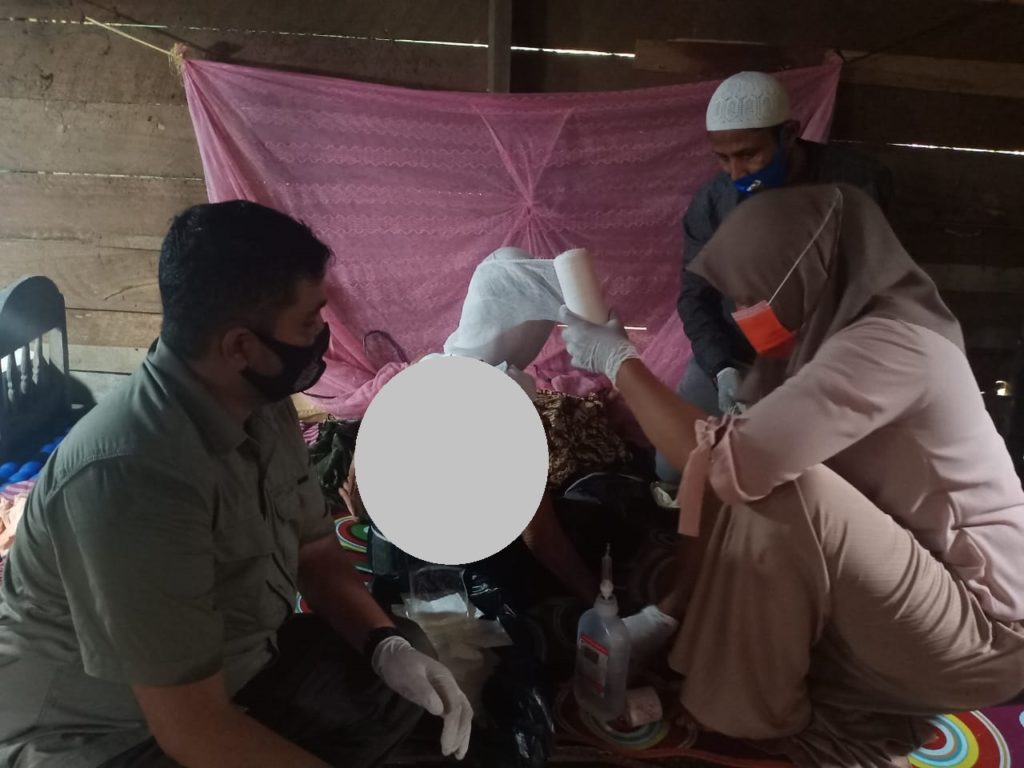 Analisaaceh.com, Meureudu | Tim Komunitas Peduli Anak Yatim & Duafa (KPAYD) Pidie Jaya kembali memantau dan memastikan kondisi kesehatan Nek Sapiah (80) warga Gampong Peulakan Tambo Kecamatan Bandar Dua yang mengalami luka bakar di sekujur tubuhnya, Sabtu (17/10/2020).