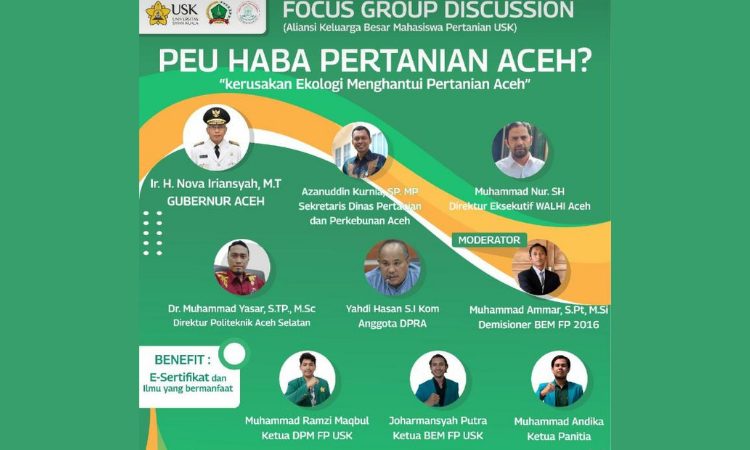 Analisaaceh.com, Banda Aceh | Dalam rangka memperingati Hari Tani Nasional, Aliansi Keluarga Besar Mahasiswa Pertanian Universitas Syiah Kuala (USK) menhgelar Focus Grup Discusion pada Jum’at (24/9/2021).