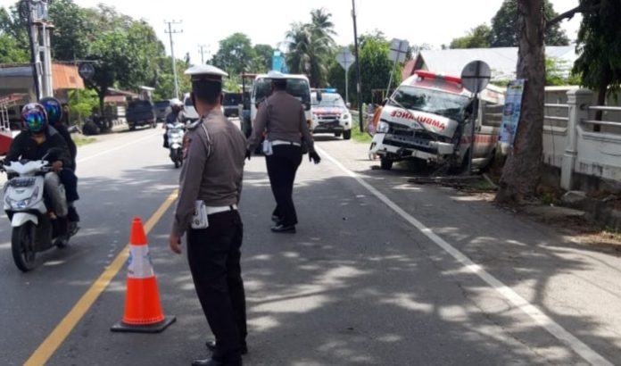 Analisaaceh.com, Sigli | Sebuah mobil ambulance jenis Toyota Heace BL 9045 Y yang membawa seorang pasien hamil dari Bener Meriah mengalami kecelakaan tunggal di Jalan Banda Aceh- Medan Gampong Pasar Padang Tiji Kec Padang Kabupaten Pidie, Selasa (6/10/2020).