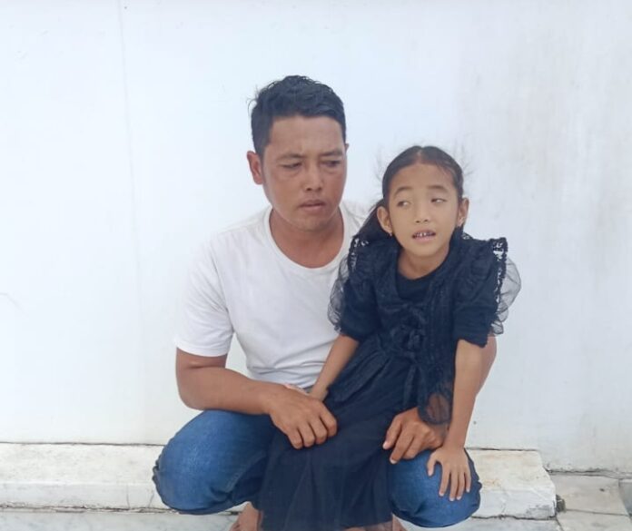 Pasien anak penderita katarak bernama Hasnibar bersama Ayahnya, Hermansyah warga Gampong Kapa Sesak Kecamatan Trumon Timur Kabupaten Aceh Selatan. Foto: Ist