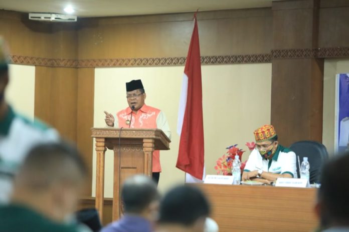 Analisaaceh.com, Suka Makmue – Ketua Umum Masyarakat Ekonomi Syariah (MES) Provinsi Aceh yang juga Wali Kota Banda Aceh tampil sebagai keynote speaker pada acara Seminar dan Sosialisasi Qanun Lembaga Keuangan Syariah (LKS) yang digelar MES Aceh Barat di Aula Kantor Bupati Nagan Raya, Jum’at (19/2/2021).