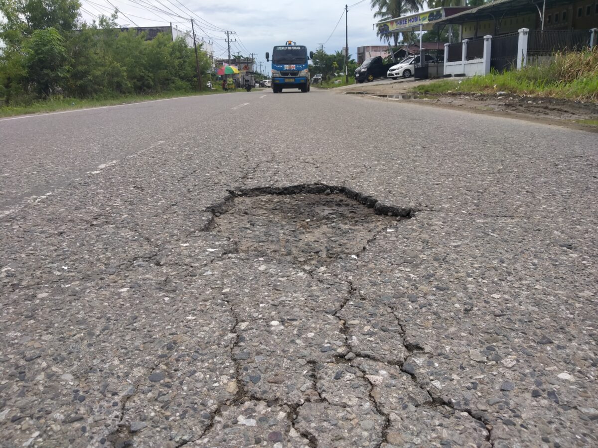 “Jalan nasional ini merupakan akses yang ramai dilalui pengendara, untuk itu kami meminta agar pihak berwenang segera memperbaikinya, sebab kalau dibiarkan, kerusakannya juga semakin parah,” pungkas Farhan.
