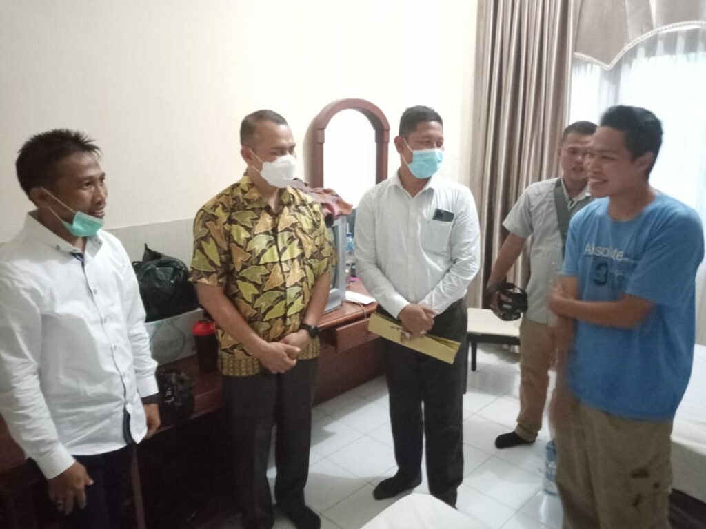 Dandim 0107/Asel, Letkol Inf. Muhammad Yusuf bersama Kepala Dinas Kesehatan Aceh Selatan, Fakhrijal didampingi anggota DPRK, Masridha, ST saat mengunjungi pasien yang mengalami Kejadian Ikutan Pasca Imunisasi (KIPI) di penginapan Jeumpa kawasan Lampineung, Banda Aceh pada Minggu (6/2/2022) sore.