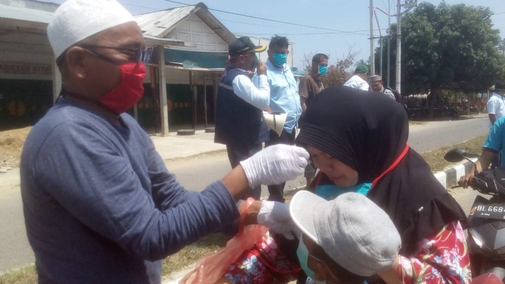 Sekitar seribuan lembar masker dibagikan kepada pengguna jalan dan warga di empat titik, yakni di Keude Nisam, Simpang III KKA, Simpang Bandara Malikussaleh dan Simpang 4 Krueng Mane. Selain itu, dilakukan juga penyemprotan disinfektan bagi kendaraan yang melintas.