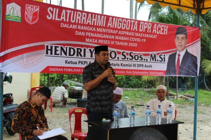 Analisaaceh.com, Tapaktuan |Â Anggota Dewan Perwakilan Rakyat Aceh (DPRA) Hendri Yono, S.Sos., M.Si menyerap aspirasi masyarakat Sawang Kabupaten Aceh Selatan dalam reses yang digelar pada Jum’at (4/12).