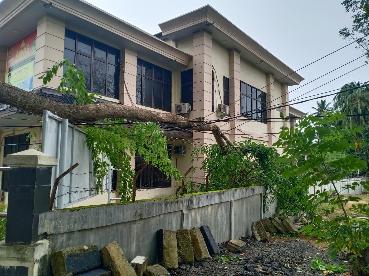 Di jalan yang sama juga terjadi Gampong Gani, pohon tumbang menimpa kabel jaringan listrik PLN di depan kantor BKN/Badan Kepegawaian Negara.
