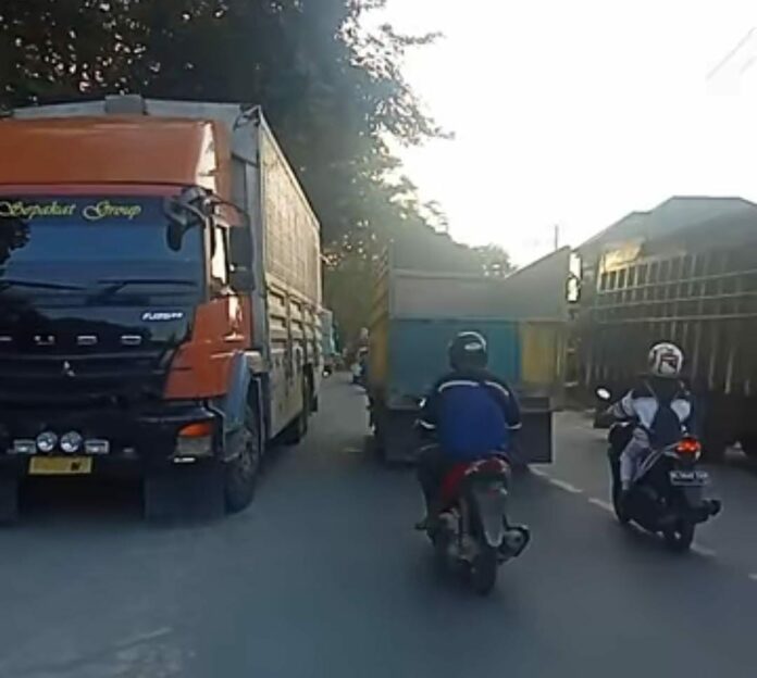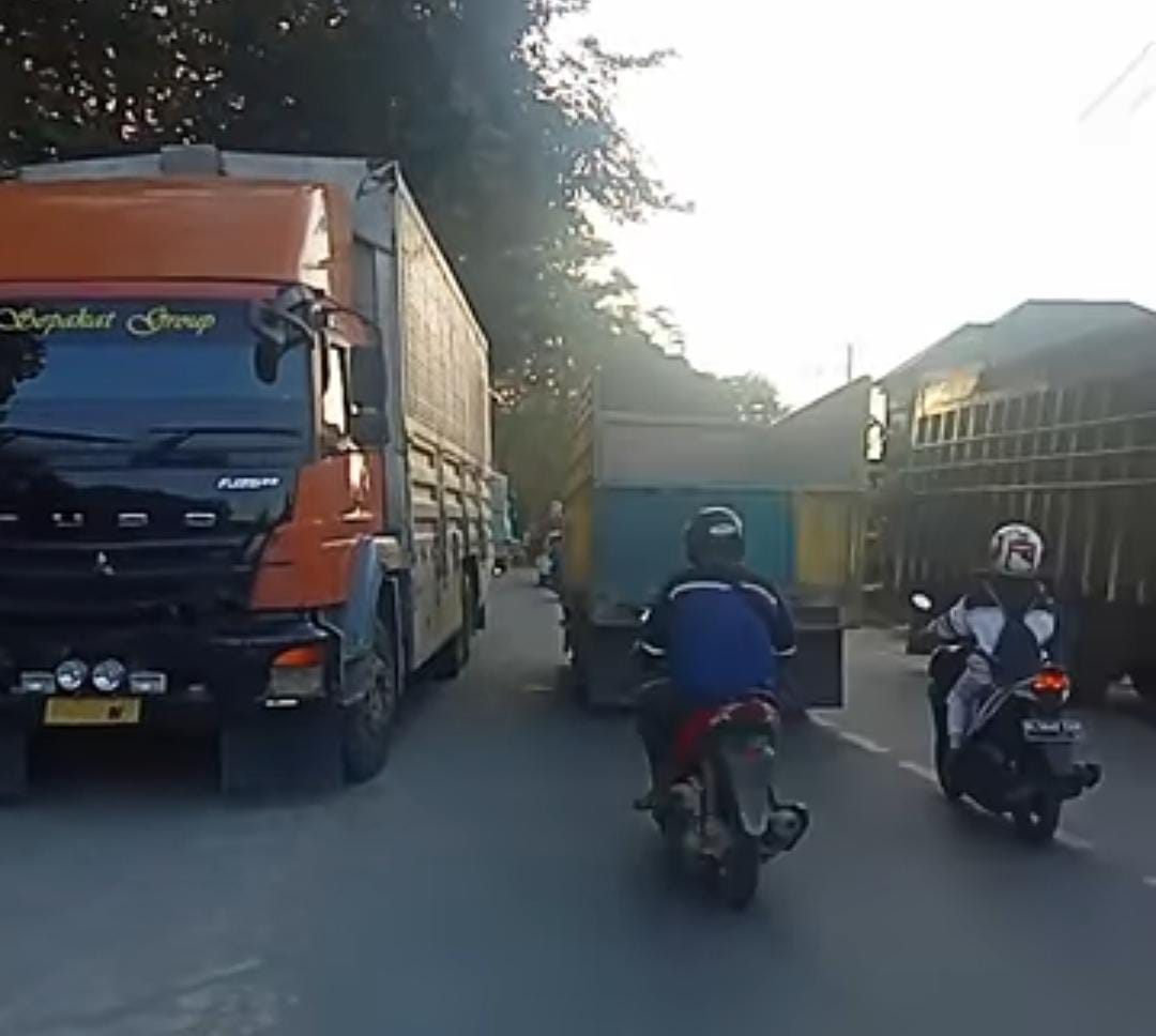 Murdani mengatakan puluhan truk tersebut diparkir hampir sepanjang 150 meter di kedua sisi jalan nasional. Berdasarkan foto di akun fb tersebut terlihat truk diparkir hingga tiga baris, sehingga memakan badan jalan nasional.