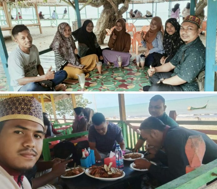 Ketua DPC PBB Aceh Utara Tgk Abdul Manan HS sedang menggalang kader Milenial di pantai Lancok, Aceh Utara beberapa hari lalu