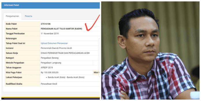Analisaaceh.com, Banda Aceh | Dinas Perindustrian dan Perdagangan Aceh di APBDP Aceh 2019 menganggaraan pengadaan alat tulis kantor Kamar Dagang Industri Nasional (KADIN) Aceh dengan pagu Rp. 1.000.000.000.00 (satu miliyar rupiah).