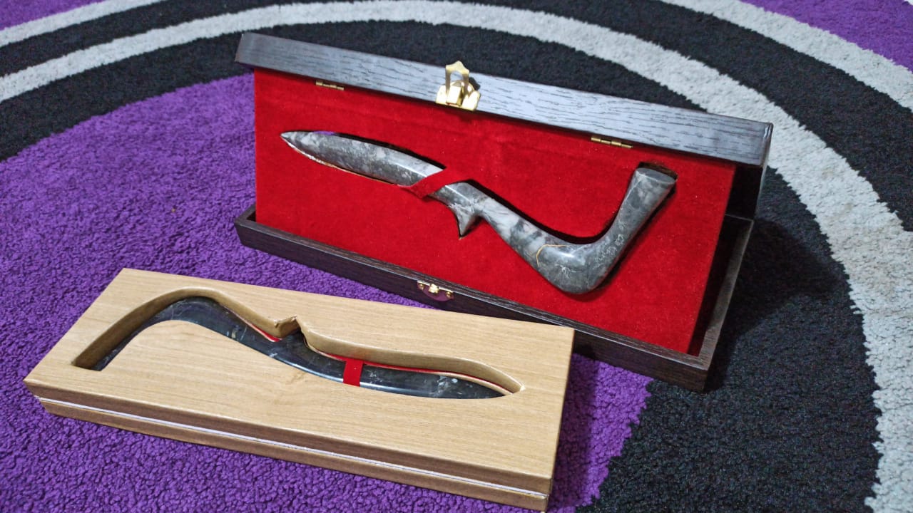 Dari tugas itu, salah satu mahasiswa yakni Aidil Yusmar Telaum Banua menyerahkan tugasnya berupa Rencong yang diukir dari batu. Melihat karya tersebut Asbahrul Amri meresa terpukau akan ide mahasiswanya itu.