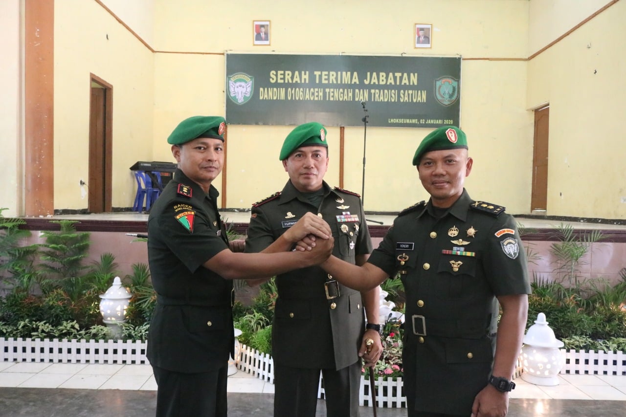 Selain sertijab Dandim 0106/Aceh Tengah, Danrem 011/Lilawangsa memimpin Tradisi pelepasan dan penerimaan perwira baru.