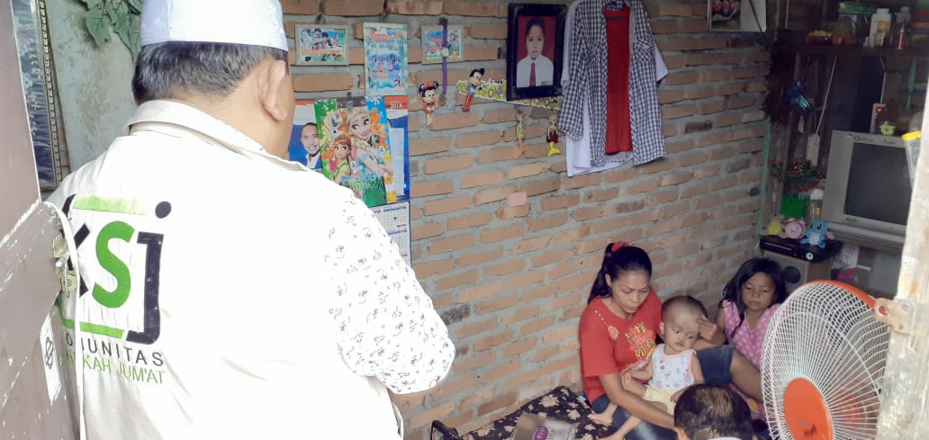 Setelah mendapat kabar di media sosial melalui group Whatsapp, kesempatan pun datang dari tim Komunitas Sedekah Jum’at (KSJ) beserta relawan berkunjung serta memberikan bantuan berupa paket sembako.