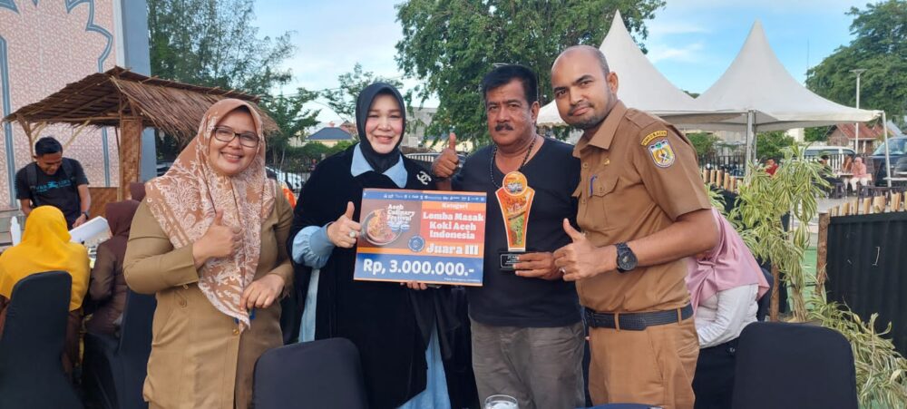 Analisaaceh.com, Banda Aceh | Kota Banda Aceh meraih juara tiga pada ajang Aceh Culinery Festival (ACF) 2023 kategori Lomba Masak Koki Aceh Indonesia yang diselenggarakan pada tanggal 14-17 Juli 2023 di Taman Sultanah Safiatuddin Banda Aceh.