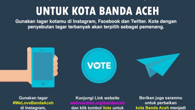 “Caranya, klik link https://welovecities.org/IN/banda-aceh/ dan pilih menu “Dukung Sekarang”. Warga juga bisa menyampaikan saran, masukan, usul hingga kritikan di kolom yang disediakan,” jelas Hamdani Basyah seraya meminta tambahan hastag #welovebandaaceh.