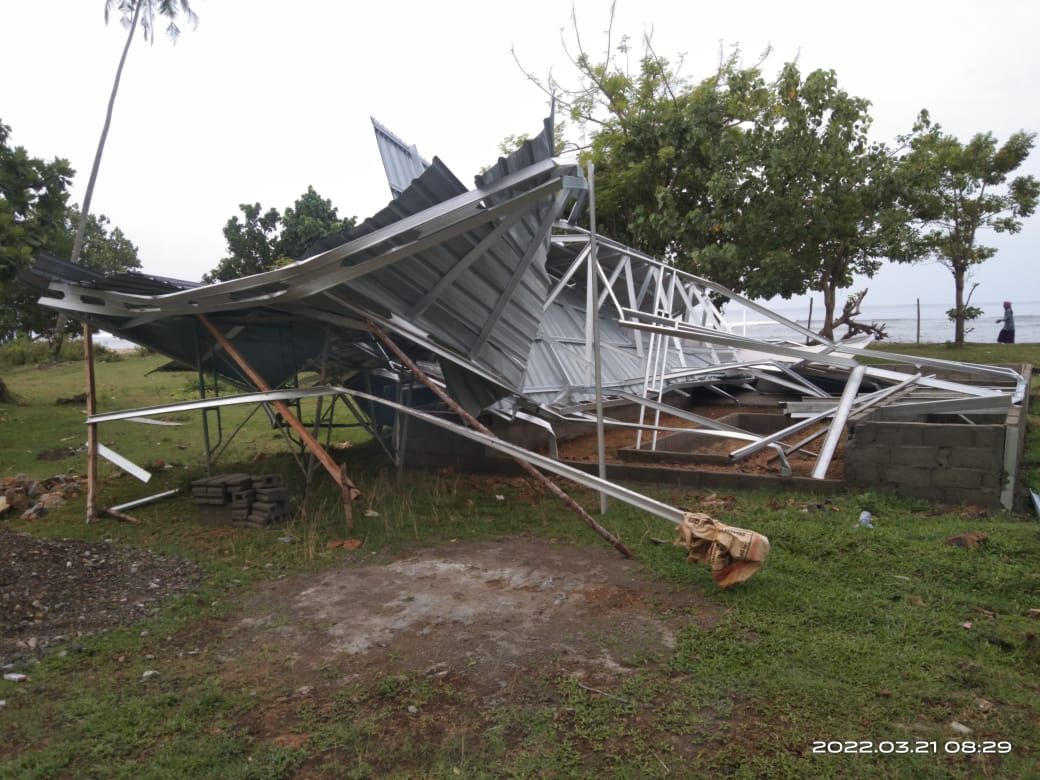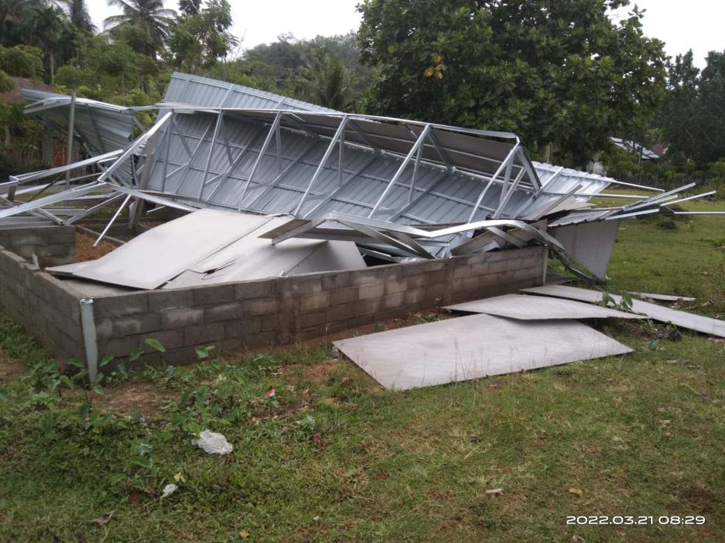 Analisaaceh.com, Tapaktuan | Satu unit bangunan BUMG dan rumah warga di Gampong Sawang Indah, Kecamatan Labuhan Haji Timur, Aceh Selatan rusak akibat diterjang angin kencang, Senin (21/3/2022).