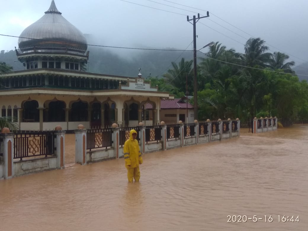 Analisaaceh.com, Aceh Besar | Akibat intensitas hujan lebat di Kecamatan Lhoong mengakibatkan terjadinya banjir luapan DAS Krueng Kala yang merendam sejumlah rumah warga, Sabtu (16/5/2020) sore.