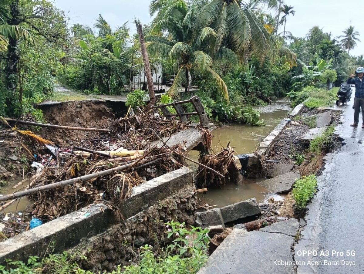 “Sementara di Kecamatan Tangan-Tangan, jembatan penghubung antar desa di gampong Blang Padang dilaporkan patah dan putus total akibat derasnya arus air sehingga akses warga terganggu,” sebutnya.