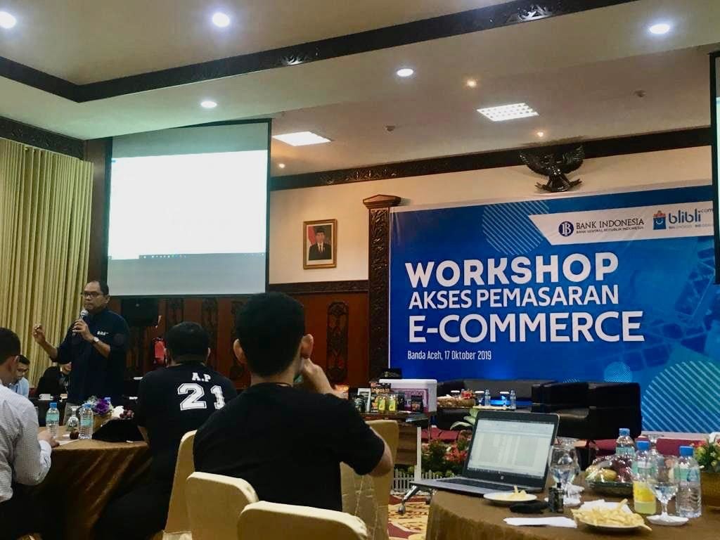 Bank Indonesia Cab. Banda Aceh berkonstrasi pada penguatan produk serta memperluas jaringan pasar produk UMKM Mengandeng blibli.com online marketplace terkemuka di Indonesia yang menyediakan sarana perdagangan elektronik mengadakan Workshop Akses E-comerce, Kamis (17/10) yang diikuti lebih dari 40 UMKM di Kantor Perwakilan Wilayah Bank BI Banda Aceh.