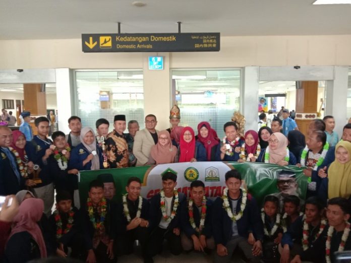 Analisaaceh.com, Banda Aceh | Kontingen Aceh pada Kompetisi Sains Madrasah (KSM) Nasional dan Madrasah Young Researcher (MYRES) 2019 yang berangkat pada tanggal (16/9) ke Manado, baru saja kembali di Aceh melalui bandara Internasional Sultan Iskandar Muda, Blang Bintang, Aceh Besar, Sabtu (21/9) sekitar 15:20 WIB.