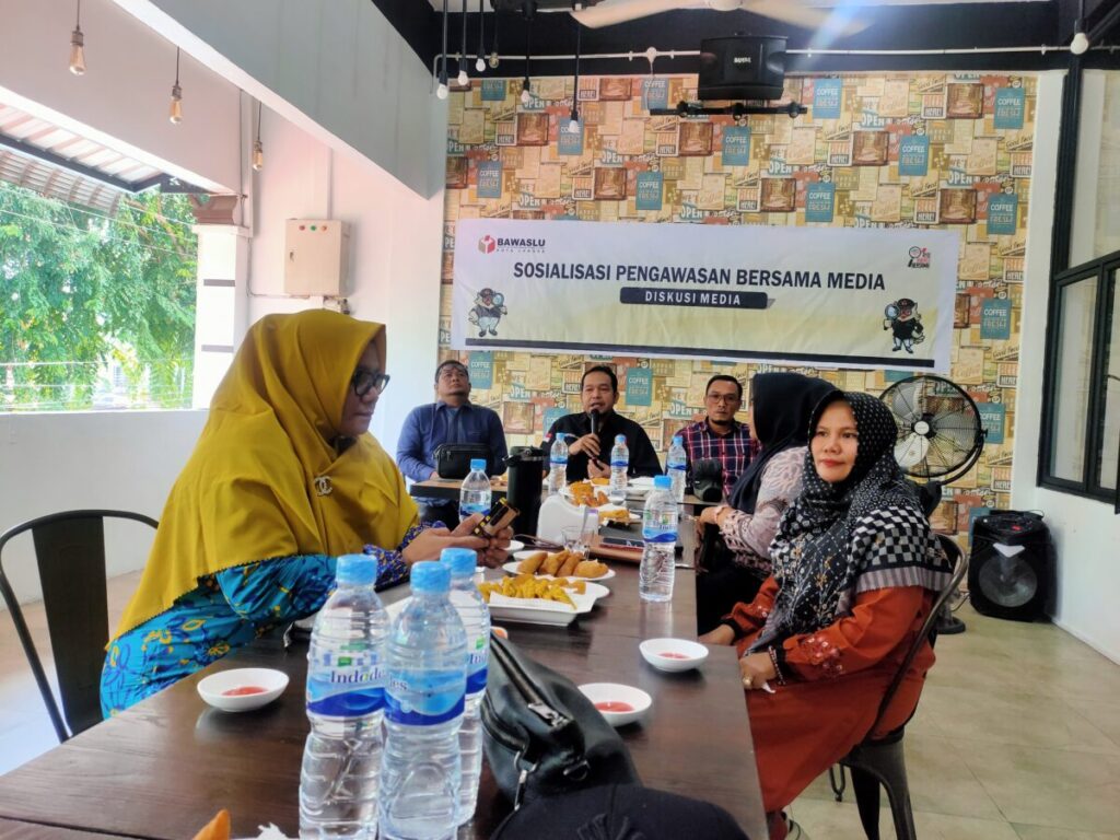 Bawaslu Kota Langsa menggelar sosialisasi evaluasi hasil pemilu 2024, di salah satu cafe di kota setempat, Rabu (17/10/2024). Foto: Analisaaceh.com/Chairul