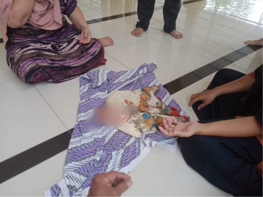 Bayi yang ditemukan di kamar mandi Masjid Baiturrahman Gampong Buket Meutuah, Kecamatan Langsa Timur, Kota Langsa, Kamis (2/5/2024). Foto (ist).