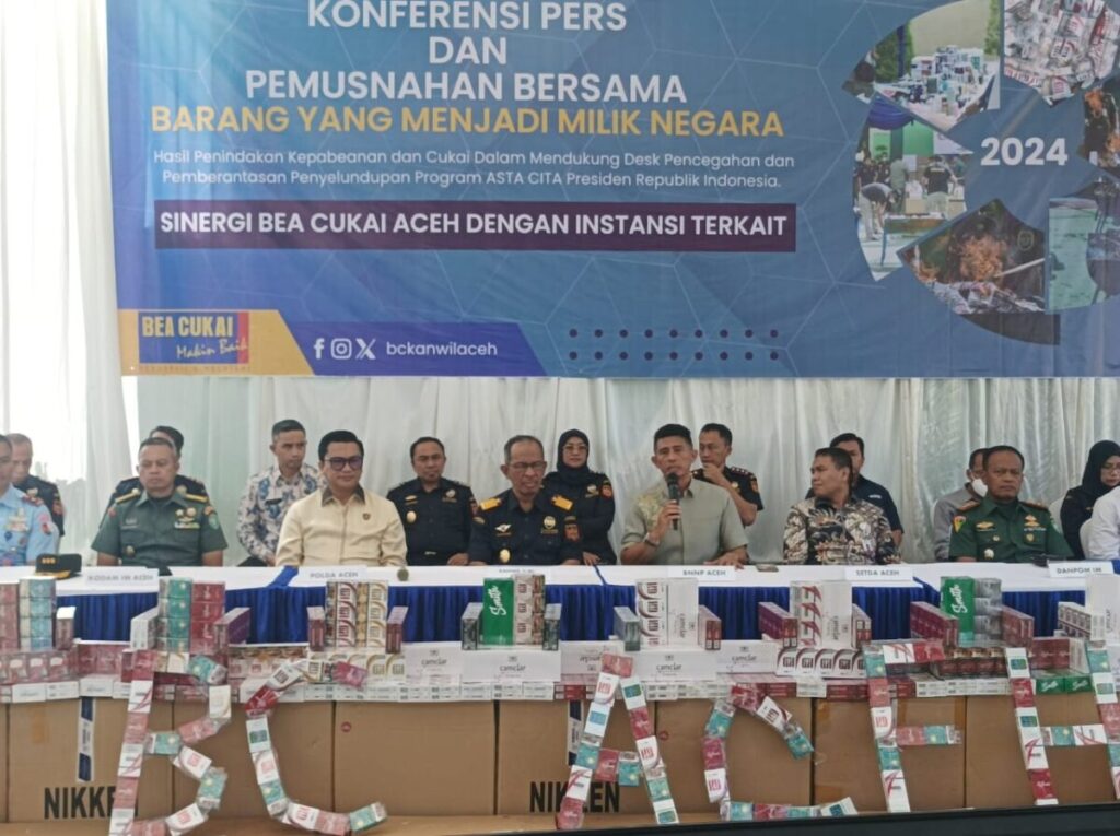Analisaaceh.com, Banda Aceh | Kanwil Bea Cukai Aceh memusnahkan barang hasil penindakan dan merilis capaian kepabeanan serta cukai selama 2024. Kegiatan berlangsung secara luring dan daring pada Kamis (12/12/2024).