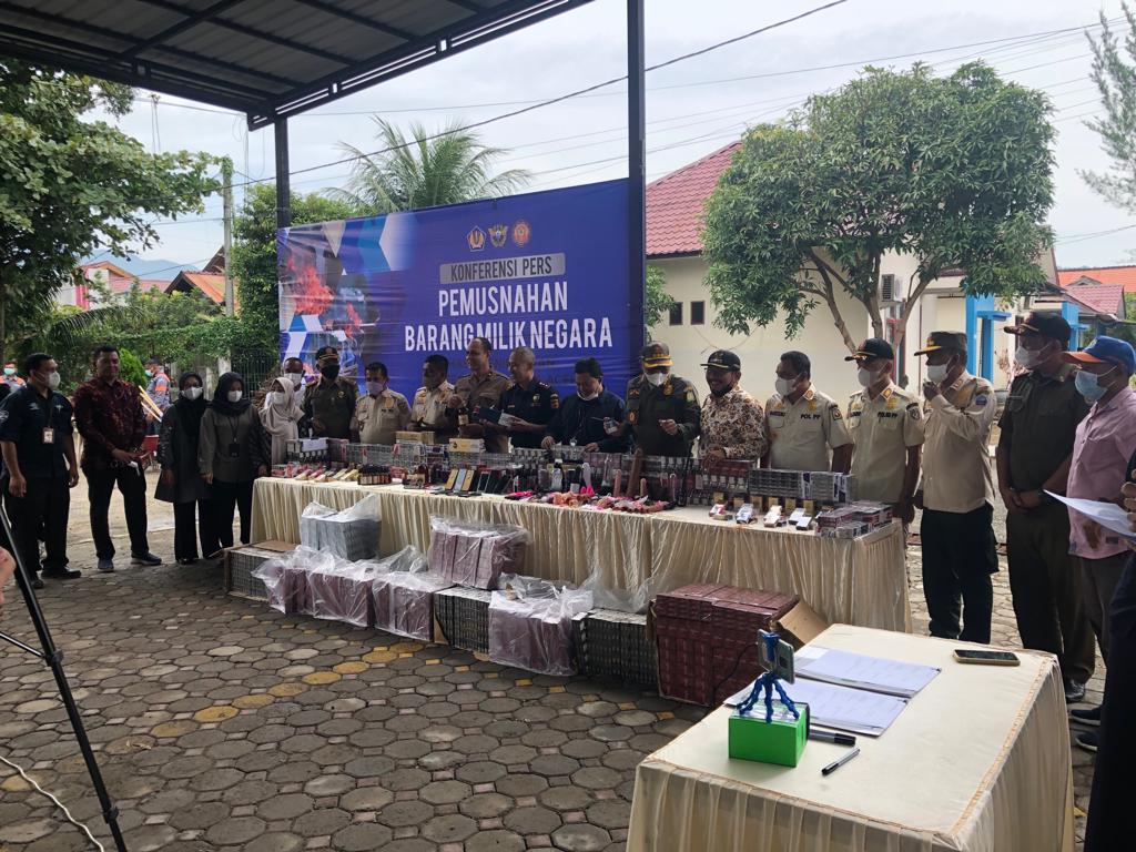 Sejumlah barang yang dimusnahkan diantaranya sebanyak 110.752 batang rokok, obat kuat sebanyak 12 botol, Smartphone tiga unit, sextoys 79 buah.