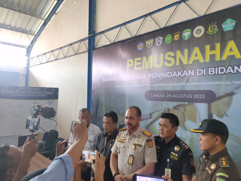 Pemusnahan barang bukti tersebut berlangsung di aula Kantor Bea Cukai Langsa pada Selasa (29/8/2023) sekitar pukul 10.00 WIB, yang turut dihadiri Kepala Stasiun Karantina Pertanian Aceh, serta seluruh unsur Forkopimda kota setempat.