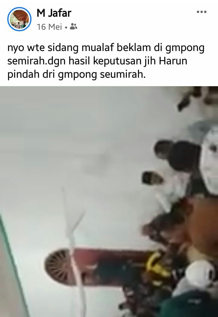 Sebelumnya diberitakan, seorang mualaf di Kabupaten Aceh Utara, Trisno Muhammadi atau Muslim (42) melaporkan akun media sosial facebook ke Polisi. Muslim melaporkan akun facebook M. Jafar karena diduga telah menyebarkan berita bohong (hoax) serta ujaran kebencian bernuansa SARA.