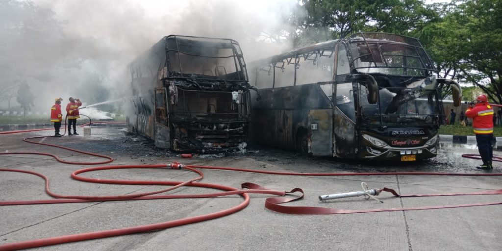 Analisaaceh.com, Banda Aceh | Dua unit bus Sempati Star jenis Scania yang terbakar di Terminal Batoh, Banda Aceh pada Sabtu (20/3) pukul 15.00 WIB diduga akibat korsleting arus saat perbaikan sistem eletrik pendingin AC.