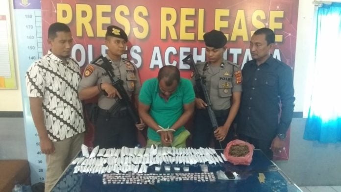 Analisaaceh.com, Lhoksukon | Polisi berhasil membekuk pelaku tindak pidana narkotika jenis sabu dan ganja di sebuah gubuk tambak Gampong Matang Ulim Kecamatan Samudera, Aceh Utara, Kamis (10/10/2019).