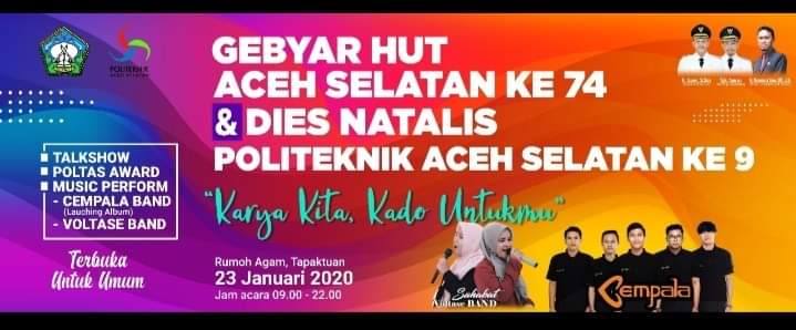 ANALISAACEH.COM, TAPAKTUAN | Dalam rangka menyemarakkan HUT Kabupaten Aceh Selatan ke 74 dan Dies Natalis Politeknik Aceh Selatan (Poltas) ke 9, Badan Eksekutif Mahasiswa (BEM) Poltas menggelar acara Gebyar HUT bertema “Karya Kita, Kado Untukmu”.