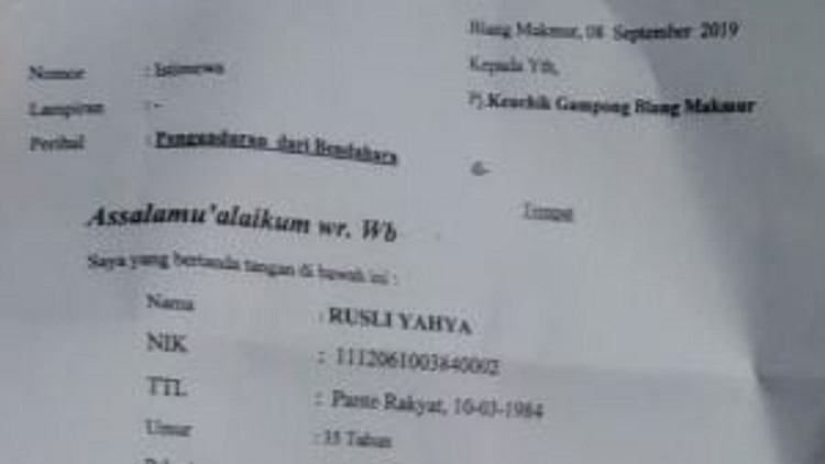Putra kelahiran 10 Maret 1984 di Desa Pante Rakyat tersebut menulis surat penggunduran diri tertanggal 8 September 2019 lalu yang ditujukan kepada Pj. Keuchik Gampong Blang Makmur bernomor: Istimewa, perihal pengunduran diri bendahara.